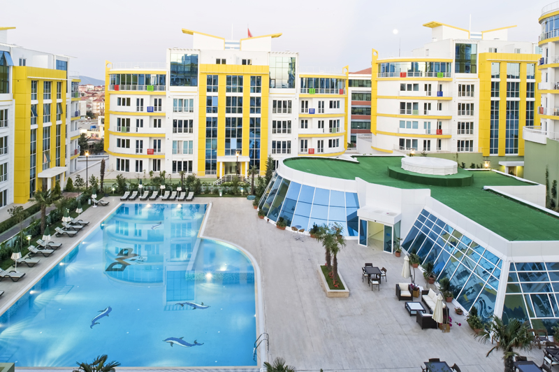 Japonların Osaka Sistem diye adlandırdığı bitişik nizam proje, sempatik ve renkli mimarisiyle dikkat çekiyor. Sosyal tesisin, modern yaşamın temel bir parçası olarak yapılandırıldığı projede üç katlı otopark, açık ve kapalı yüzme havuzu, fitness center çocuklar için oyun parkları, yürüyüş ve dinlenme alanları, Aquapark, restoran ve kafelerin yanı sıra 44 adet dükkandan oluşan bir alışveriş merkezi de bulunuyor.